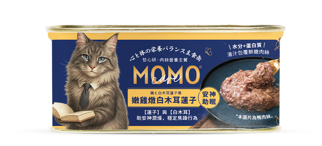 (12罐裝) MOMOCARE - 哲心研肉絲營養貓用主食罐(嫩雞燉白木耳蓮子)110G*12罐