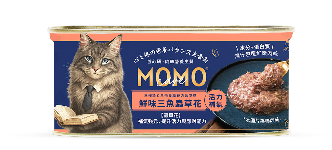 (12罐裝) MOMOCARE - 哲心研肉絲營養貓用主食罐(鮮味三魚蟲草花)110G*12罐