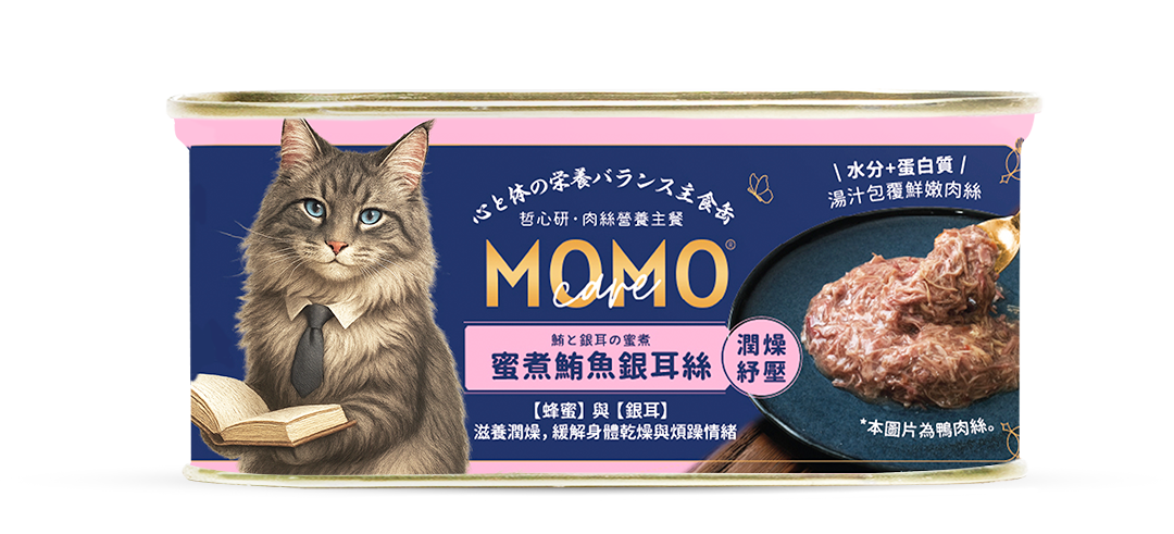 (12罐裝) MOMOCARE - 哲心研肉絲營養貓用主食罐(蜜煮鮪魚銀耳絲)110G*12罐