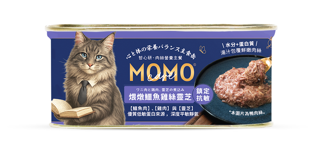 (12罐裝) MOMOCARE - 哲心研肉絲營養貓用主食罐(煨燉鱷魚雞絲靈芝)110G*12罐
