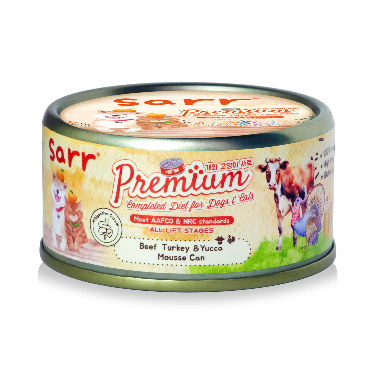 (12罐裝) Sarr - 08牛肉+火雞+絲蘭增強呼吸系統慕絲貓犬主食罐80g*12罐