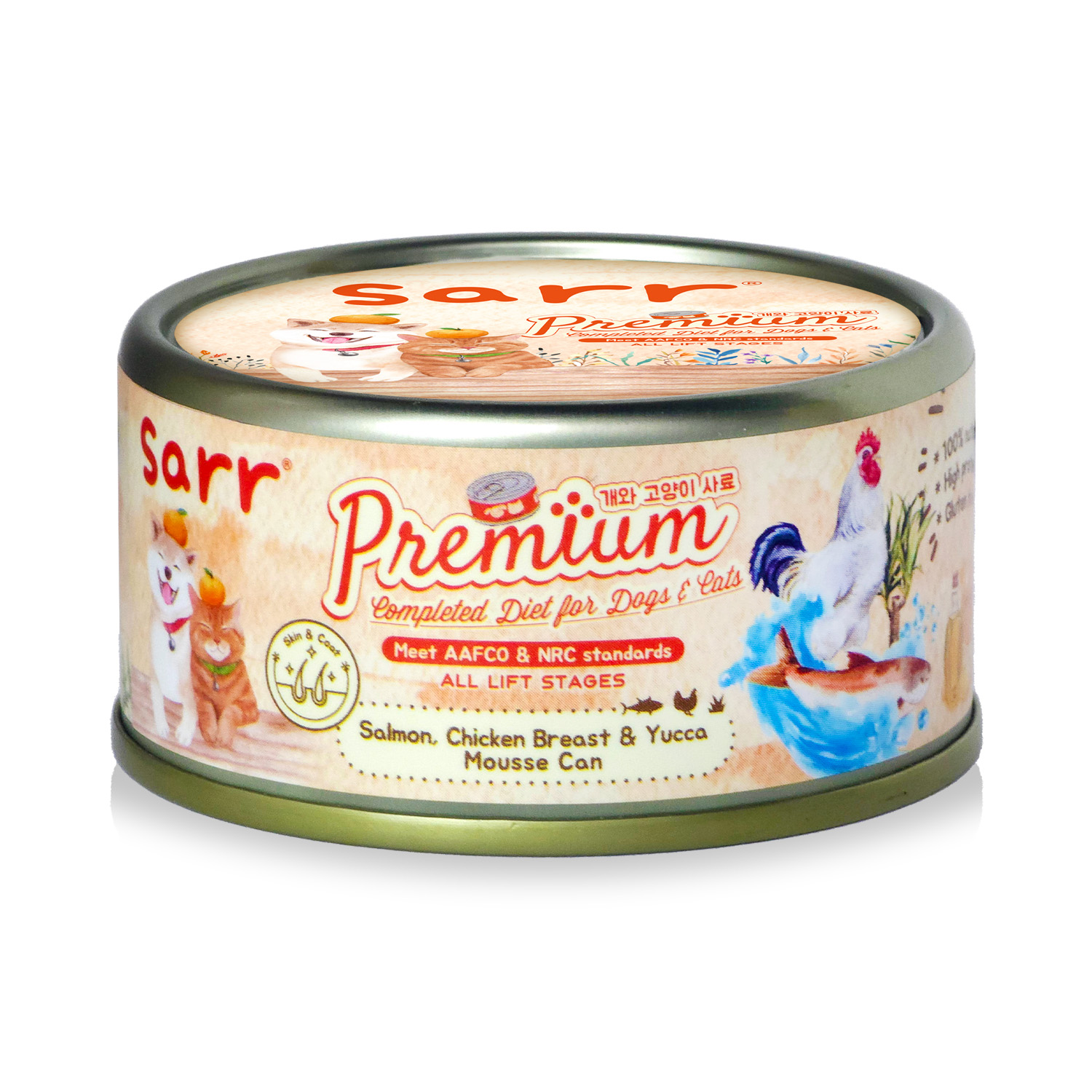 (12罐裝) Sarr - 04三文魚+雞肉+絲蘭皮毛護理慕絲貓犬主食罐80g*12罐